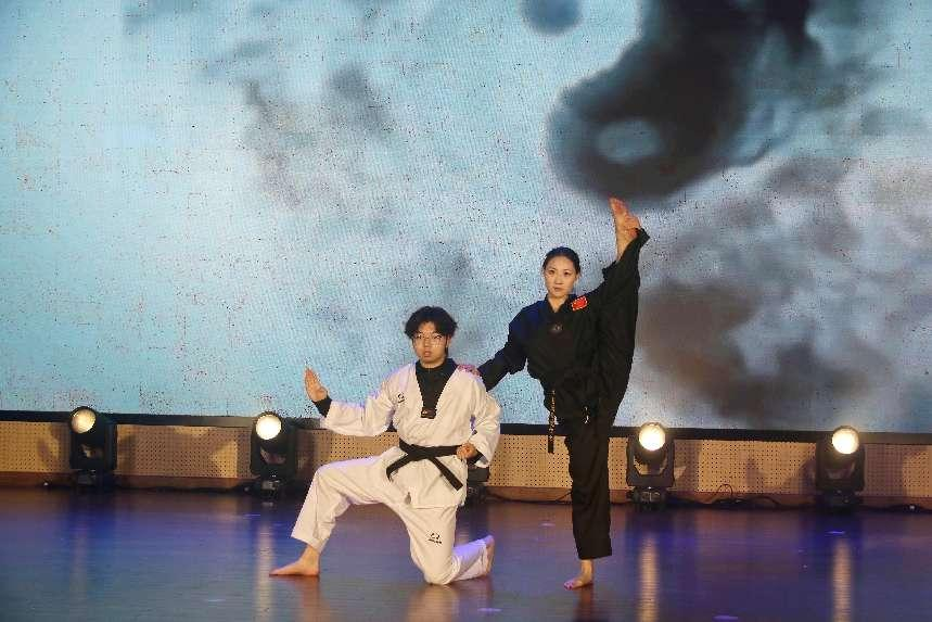 晚会以粉渐变色调的舞台设计拉开序幕,晚会涵盖11个精彩环节,开场舞《Meow》以灵动舞姿点燃全场,舞者谢雨津、戴可柔等人身着豹纹演出服,在月光投影与粉紫光束下演绎力量与柔美的融合。随后的古典舞《探》则以飘逸水袖与诗意编舞,诠释护理工作“刚柔并济”的职业特质。既有轻松幽默的小品《脆皮诊疗室》,以医患故事传递温情;也有热血澎湃的武术表演《武韵》,蒋紫馨、陆国政等人以跆拳道高踢、擒拿动作为护理人的“守护之力”写下注脚。拉丁舞《Red》以炽热节奏点燃全场,歌曲串烧《从心跳到白头》则以深情旋律致敬医护生涯的初心与坚守。晚会特别设置“技能之星”表彰环节,黄承副校长给省赛获奖选手赠送鲜花、送上祝福勉励学子再接再厉,再创佳绩。