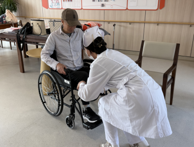 考场上,既充满了紧张的考核氛围,更洋溢着温暖的互动温情。面对真实的照护情境,同学们沉着应对,严格遵循操作规范。在轮椅转运项目中,同学们首先细致完成自身准备与轮椅安全性能检查,确保无虞后,便以轻柔言语与长者们亲切沟通。他们耐心指导协助长者们调整姿势,稳稳当当地从床铺或座椅安全转移至轮椅,细心翻下脚踏板、调整坐姿、妥善系好安全带,并时刻关注长者的舒适度与保暖需求,动作流畅、态度亲和。