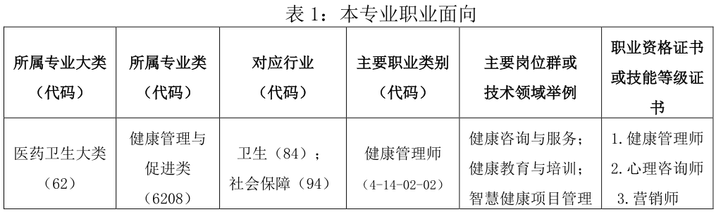 就业与升学方向:可继续赴马来西亚林肯大学继续攻读护理本科学历,或在国内专升本;也可根据国内外健康管理岗位需求,在国际化背景下从事个人或群体健康咨询与服务、健康教育与培训和智慧项目管理等工作。 本专业人才培养对应的行业、主要职业类别、主要岗位类别、职业资格证书如下表所示: