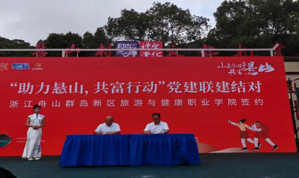 在“小岛你好 共富悬山”活动现场,胡炳波书记代表学院与悬山岛进行“一支部一小岛”党建联合体建设协议签约,实现优势互补,促进双方党建工作与业务工作的深度融合,形成“1+1>2”的聚变效应,实现共建共融。