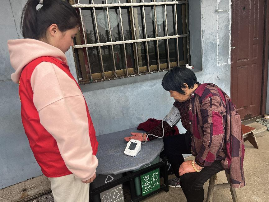 师生一行还实地走访了悬山村,参观悬山社区居家养老服务照料中心,了解当地的养老服务水平及规划建设的医养中心,为老人们测量血压、老年健康知识宣教等志愿服务。