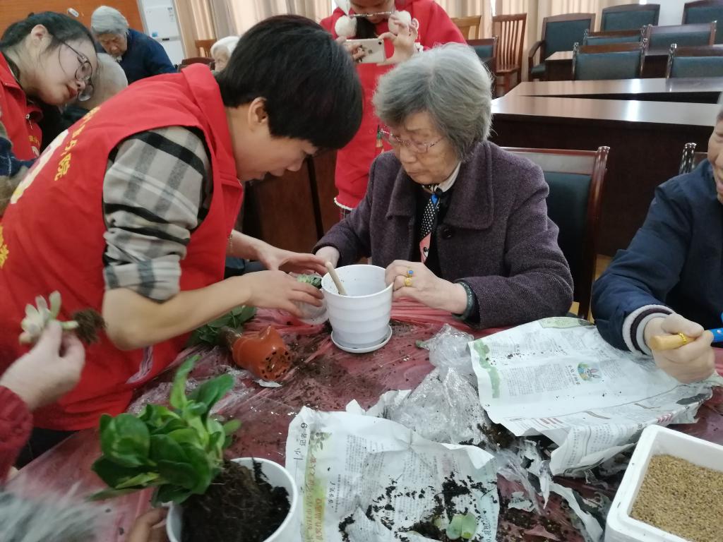 志愿者们一早就备好了多肉和绿植,打算作为新年礼物为老人们带去温暖。在市福利院内,志愿者们现场为老人讲解如何种植多肉,老人们在志愿者们指导和帮助下积极尝试种植。当一盆盆植物展现在面前,老人们脸上洋溢着幸福的笑容。在天颐老人之家,志愿者们针对院内老人大脑反映较迟钝,手脚行动缓慢等特点,进行不受时间地点限制的手指操训练。手指操是-项通过手指活动进行锻炼的运动,经常做手指操可促进手指及全身血液循环,改善手指灵活性,对大脑衰老起到一定的延缓作用。老人们边观看视频,边在志愿者们的指导下进行手指操锻炼。手指操结束后,现场开展了益智记忆游戏,老人们积极参与,现场欢声笑语,其乐融融。