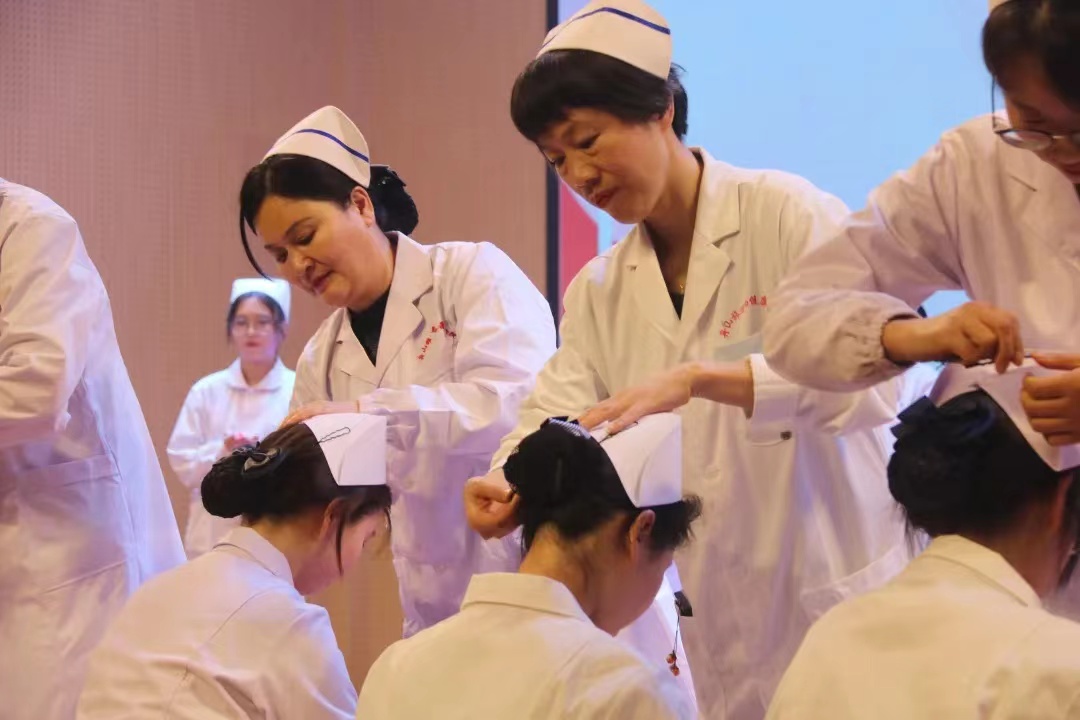 今年护士节的主题是“关爱护士队伍,护佑人民健康”,同学们通过歌曲、舞蹈、情景剧、相声等精彩节目展示了护理人的精神风貌,传递着护理人的初心使命。在授帽仪式上,护理前辈、学院老师亲手为“准护士”们戴上一顶神圣的燕尾帽,点燃象征着南丁格尔精神的烛火。护理学生手捧红烛,宣誓牢记南丁格尔“竭诚协助医师诊治,务谋病者之福利”的誓言,完成由护生到护士的成长与蜕变。