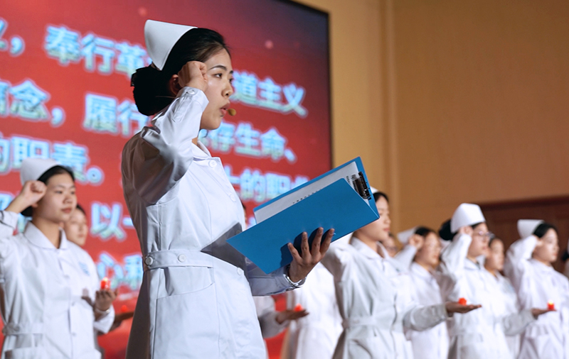 “我志愿献身护理事业,奉行革命的人道主义精神,坚守救死扶伤的信念,履行‘保存生命、减轻痛苦、促进健康’的职责。我宣誓:遵守护士的职业道德规范,像南丁格尔那样,以一颗同情心和一双愿意工作的手,以真心、爱心和责任心对待每一位病人......”昨天晚上,在“医心如磐 奋楫笃行”5.12护士节晚会上,学院全体师生集体宣誓道。