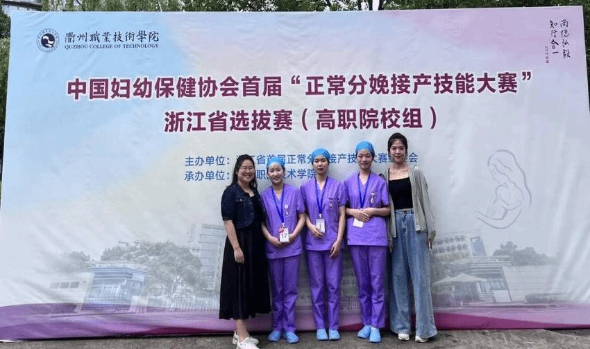 5月26日至27日,中国妇幼保健协会首届“正常分娩接产技能大赛”浙江省选拔赛(高职院校组)在衢州职业技术学院隆重举行。本次技能竞赛共设两站。第一站竞赛项目为“产前指导与产后照护”,含第一产程自由体位指导和分娩后2小时内照护。第二站竞赛项目为“正常分娩接生”,含胎儿的娩出,胎盘娩出及软产道检查的第二、三产程接产操作。最终,我院选手22助产1班陈良瑜、张露欣同学,22助产2班万雨婷同学凭借扎实的理论功底和熟练的操作技能在18名参赛选手中脱颖而出,荣获个人二等奖1项、三等奖2项的优异成绩,并喜获团体二等奖。