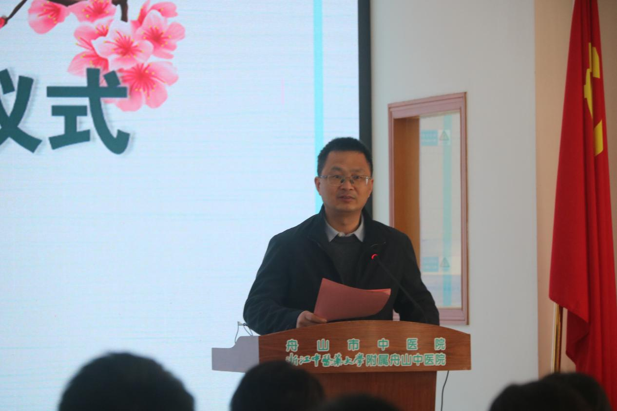 3月20日下午,我院与舟山市中医院合作举办的2023级护理(中医)专业现代学徒制班开班仪式在舟山市中医院学术报告厅隆重举行,舟山市中医院副院长李清平、俞益君及相关处(科)室负责人,我院党总支书记胡炳波、副院长马怡婷、党总支副书记王珊珊及护理教研室部分教师、辅导员,全体导师和学生参加仪式。市中医院科教科主任谢琼主持开班仪式。