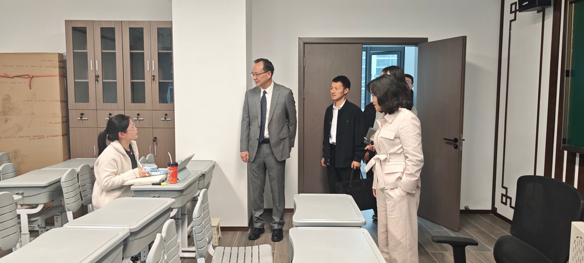 舟山市中医院高度重视医教协同培养人才,在市卫健委的支持下,去年,对新建成的中医院教学大楼进行了全面装修。设置了培训教室、研讨室、学生宿舍等功能,布局合理、设施完备,为广大师生及医务人员提供了优质的教学实践平台和舒适的生活保障,为中医护理现代学徒制班的开展创造了良好的条件。校党委书记徐方明专程前往教学大楼现场视察指导,询问学生学习生活情况,勉励师生安心教学,提升本领。